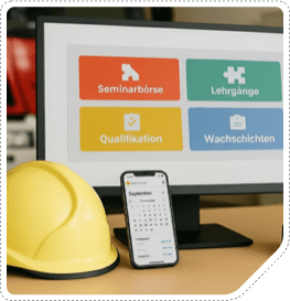Von der Ausbildungsplanung, digitalen Lehrgangsplanung über automatisierte Qualifikationsverwaltung, rechtssichere Dokumentation bis zur smarten Seminarbörse: Wir unterstützen Deinen Ausbildungsalltag mit System und Struktur.